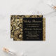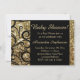 Glitzy glamour para o novo e futuro príncipe. É um convite para chá de fraldas de menino em ouro falso com efeito brilhante, e espirais pretas, convite de festas personalizado elegante. Convites lindos e festivos. Imagem fotográfica negra e Dourada de brilho para celebrar o grande dia do convidado de honra.