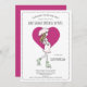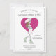 Um brilhante chá de fraldas cor-de-rosa-escuro brilhante por convite por correio, com uma futura mãe a caminhar com uma camada de guarda-chuva sobre um coração cor-de-rosa escuro e rosa-escuro na parte de trás do convite.