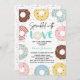 Chá de fraldas de aspersão para bebês multicolorido do Rosquinha Convite pulverizado com chá de fraldas multicolorido apaixonado com várias rosquinhas decoradas diferentemente e aspersão multicoloridas. O convite para chás de fraldas neutro em termos de gênero é ideal para um bebê aspergido.