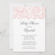 Comece seu chá de fraldas de bebê com o nosso convite de Chá de fraldas de espiral floral preto e elegante, cor-de-rosa e branco, definido em um fundo branco nítido. Personalize nosso convite elegante com suas informações de chá de fraldas e você está pronto para ir. Disponível em outras combinações de cor de bebê na moda no nosso compro em www.celebrateitinvites.com. Veja nossas notas de agradecimento, adesivos e botões de noiva em nosso compro