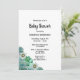 Simples e elegante com plantas suculentas e flores de cactos, fundo branco clássico. Flores e plantas de cor aquosa em prata, verde e rosa claro. Com o texto: Chá de fraldas. Modelos para o nome da futura mãe, data e detalhes da festa. Letras pretas coloridas. Um convite moderno, simples e elegante pronto para você personalizar! Traseiro: cromo verde, padrão zag em ziguezague.