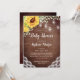 Esses convites para o chá de bebê de girassol apresentam um design de girassol de cor d'água com flores de respiração de bebê em um fundo de madeira com luzes de rendas e jarro de pedras. Personalize-os com o seu próprio texto. Itens correspondentes disponíveis.