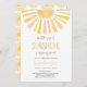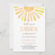 Brilhe seu chá de fraldas com este maravilhoso Convite à Chá de fraldas Sunshine, perfeito para celebrar a chegada do seu pequeno raio de sol! Apresentando um design quente e vibrante com raios solares laranja, amarelos e cor-de-rosa, este convite inspirado no livro captura o espírito alegre de um dia ensolarado. As cores suaves, mas marcantes, e os filmes solares brincalhões criam uma atmosfera acolhedora e alegre, fazer-a a escolha ideal para o chá de uma menina. BBS397
