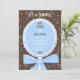 Planejar um bebê surpresa para a dama sortuda esperando um bebê...este é o convite para você. O design apresenta um chocalho azul como ponto focal. Para tornar a design ainda mais divertida, os detalhes surpresa do convite são dentro o chocalho do bebê, junto com a palavra "SHHH!" para enfatizar o elemento surpresa do chá. O fundo apresenta um confete azul em marrom. Uma forma excelente de começar um chá de fraldas surpresa. Direitos autorais