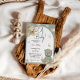 Este convite de chá de fraldas neutro em termos de gênero inspirado no estilo rústico boêmico. Imaginem um urso bonitinho vestido de capuz, sentado no meio da beleza serena da erva floral dos pampas em tons verdes e salgados. Essa cena encantadora captura a essência da natureza e da tranquilidade, fazer-a uma escolha ideal para celebrar a chegada de um pequeno novo.