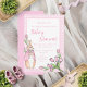 Beatrix Potter cor-de-rosa-branca com a coordenação do convite para chá de fraldas de fonte rosa com tulipas e rosas de cor-de-água. Quadro doce de xadrez rosa e branca. Perfeito para o chá de fraldas de coelhinho mais doce para uma menina. Personalize com seu local. Adicione o registro da mãe a ser no lado oposto.