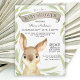Coelhos coelhos são um dos temas de chá de fraldas mais populares devido à popularidade dos livros infantis de coelhos. Este design de aquarela bonitinho tem um coelho marrom com uma face adorável e está enquadrado em um padrão de folha verde e sabioso. O esquema de cores funciona lindamente para bebês e meninas. Personalize o texto do exemplo com suas especificações.