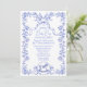 Celebrar ao estilo do eterno com este elegante Toile de Jouy francês e design inspirado na Chinoiserie, apresentando um cavalo balançante caprichoso perfeito para dar boas-vindas a um bebê. Uma fita elegante, ao estilo coquete, que flui perfeitamente, adiciona um toque gracioso, enquanto um quadro retangular ornamentado embelezado com florais vintage luxuosos e folhagem delicada cria um cenário refinado e romântico para mostrar seus detalhes de celebração. Este design evoca o charme clássico e a sofisticação lúdica, ideal para um evento inesquecível.