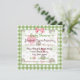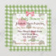 Convites de chá de bebê, giros e giros, para uma menina com uma fronteira verde pastel de gingham e bolinhas cor-de-rosa e castanhas modernas, embelezadas com um arco rosa bonito. Este padrão é feito por PhotographyTKDesign com retratos de margaridas cortesia de BSlivia em ww.publicalphotoshopbrushes.com