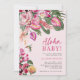 Convite para Chás de fraldas Tropicais. Transforme seu chá de fraldas em um evento inesquecível com nosso convite 'Aloha Baby!', com um belo quadro lateral e um beija-flor fofo. Brimmmando com elegantes toques modernos e cores vibrantes, este convite apresenta uma trabalho de arte de cor-de-água espantosa com palma verde-luxuosa e folhas monstera, orquídeas vívidas magenta e fuchsia, e delicadas flores de hibisco rosa-pincelado. Defina o tom perfeito para sua celebração com este design cativante e torne seu chá de fraldas realmente especial.