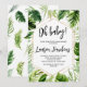 Traga a beleza dos trópicos para a sua celebração com este Convite para Chás de fraldas Tropicais. Projetado com uma vibração fresca e neutra em termos de gênero, este convite apresenta elegantes folhas tropicais verdes e uma borda de ouro brilhante, um encanto natural perfeitamente equilibrado com um toque de vidro. Ideal para jardim, verão, ou chás de fraldas inspirados na ilha, este convite tropical é uma forma nova e festiva de convidar seus entes queridos a celebrar. BBS194