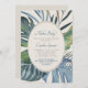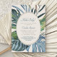 Convide seus convidados para o paraíso por um dia com esta elegante design de palmeiras tropicais. Apresentando um spray de folhas tropicais sorteadas em azuis serenos e verdes e um padrão de ratos estilizados nas costas, essa design incorpora um dia de brisa debaixo das palmeiras. Perfeito para seu caso casual de praia ou brunch. Compre a coleção hoje para o papel de carta correspondente, e vá para o dia perfeito!
