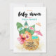 Faça um tom tropical para sua celebração com este convite de chá de fraldas inspirado na ilha. Apresentando um abacaxi tropical enfeitado com palmeiras e flores exóticas de hibisco em corais costeiros, rosa e turquesa, esse convite é perfeito para um tema de praia ou chá de verão. Arte da KL Stock.