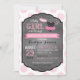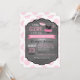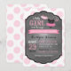 Fundo de impressão de pontos cor-de-rosa e branco com tutu de jumper polka-dot, fralda e botas na placa de convite para chá de fraldas de garota da linha de vestiário.