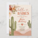 Chá de fraldas do Boho Desert Twin, editável, convite para o sul do cacto do oeste, deserto neutro em gênero, tom de terra quente Girl Texas chá de fraldas