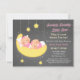 Que belo milagre que você é! Dobre o milagre com este chá de fraldas de meninas gêmeas fofinhas! Na lua crescente estão duas bonitinhas dormindo em rosa doce! Um está descansando em um travesseiro enquanto o outro repousa no primeiro. Que doce! Espumantes e reluzentes estrelas amontoadas brilham lindamente sobre o fundo da cinza em contraste à medida que os bebês sonham. Personalize facilmente com os detalhes do seu partido. Excelente de mães serem quem espera garotas gêmeas!