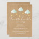 Apresentando lindas nuvens verdes de menta e estrelas ouros em cordas, em um fundo de boho kraft rústico, este convite para chás de fraldas neutro por gênero é perfeito para todos os pequenos que estão a caminho. Adicione seus detalhes de celebração em branco para criar o convite perfeito.
