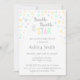 A cintilação da cintilação pouca estrela personalizou o cartão do convite do chá de fraldas com as estrelas cor-de-rosa, azuis, verdes, amarelas. Unisex, ponto morto do género. Brandamente pastel.