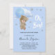 Para um chá de fraldas celebrando um menino. Um fundo azul com estrelas. Um ursinho de pelúcia segurando um balão azul claro. Personalize e adicione o nome da mãe a ser e os detalhes da festa. O nome e o texto: Oh Boy! são escritos com um estilo escrito à mão