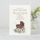 Este design apresenta um convite para chá de fraldas, cor d'água, floral, elegante carruagem de eucalipto vintage, com um belo buggy vitoriano, botânico entre rapazes e raparigas neutro, com um mínimo moderno minimalista e moderno, excelente para a mamãe-mãe ser, uma diversão de na moda, uma tenda e marrom, simples e moderna tipografia da escrita da caligrafia. com um excelente verde para a gravidez de novo bebê