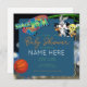Cartoon de basquete Space Blue Green Chá de fraldas Invitation. Faça uma declaração com este convite personalizado de chá de fraldas temático. Você pode enviá-lo facilmente através de texto ou impressão e enviá-lo para seus convidados.