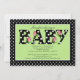 Comece seu chá de fraldas com nossos adoráveis convites para chuveiros. Nosso convite para chás de fraldas bonito contém a palavra "bebê" em um padrão de bolinhas preto e branco com tulipas cor-de-rosa definidas em um fundo verde. Perfeito para um chá de fraldas neutro em termos de gênero. Disponível no nosso compro em www.celebrateitinvites.com para este convite para na moda a rosa, verde e azul