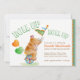 Um belo elefante de bebês brancos e rinocerontes, um circo de circo, mostra convites para apresentação. Arte aquarela de um rinoceronte num monociclo de um lado e um elefante balanceador parado numa bola de bebês macios, que chuva corações de bolhas e com dois balões em forma de coração no reverso. Whimsical unisex, sexo neutro para bebês, convites em tons de azul marrom, verde, roxo, laranja e aqua. Outros itens de chá de fraldas de circo correspondentes também estão disponíveis. Personalize com os detalhes do seu chá de fraldas. © Pintura única em aquarela e projetada por Sarah Trett www.sarahtrett.com para www.mylittleeden.com no zazzle.