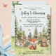 Convite à Chá de fraldas de Animais da Floresta Gelada — Apresentando um tema de história da floresta em cor-de-água com criaturas adoráveis (e até uma coruja a olhar sobre uma árvore) e um céu azul suave. Fácil de personalizar e uma maneira adorável de definir o palco para este evento especial. Um convite perfeito para chás de fraldas neutro em termos de gênero para todas as estações! Se você tiver alguma pergunta sobre design ou desejar acessórios correspondentes, basta enviar uma mensagem ou um e-mail para v.dye@rcn.com e nós teremos o prazer de ajudar.