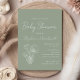 Convites Chá de fraldas Verde de Arte de Linha Botânica Mod