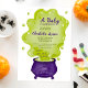 Um bebê está se preparando! Prepare-se para uma festa do chá de fraldas de Halloween não tão assustadora com este adorável e fofo caldron de bruxas roxas e poção verde e convite de bolhas com ilustração de Halloween fofa. O outono perfeito é o chá de baía neutra do Halloween.