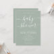 Convite para Chá de fraldas Verde do Elegante Script Sage. Convide a sua família e amigos com este modelo de casamento moderno mínimo. Personalize este convite elegante e na moda com nomes, local, data e hora.