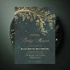 Um galho branco e cascata de folhagem esmagadora, cintilante com luzes de fadas e poeira mágica, em camadas com efeito dourado (isto é um efeito digital, não uma folha real ou um reluzente!) decora este verão primavera outono o convite para chá de fraldas neutro de inverno com um tema de floresta encantada e um fundo verde esmeralda. Um convite elegante e moderno para um chá de fraldas de conto de fadas. Perfeito para mães e pais que amam o cenário florestal de conto de fadas, o tema floresta de fadas ou jardim de fadas e o verde esmeralda, e que querem uma celebração neutra em termos de gênero.