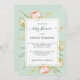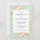 Convite de chá de fraldas bócio rústico floral com peões cor-de-rosa apresentando um roteiro elegante num fundo verde pastel bonito. Se precisar de ajuda ou produtos correspondentes, entre em contato conosco através da nossa loja.