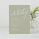 Para aqueles que procuram uma design moderna minimalista para o vosso chá de fraldas, este convite verde sábio é perfeito para vós. A cor simples e neutra do gênero apresenta oh baby na tipografia do script. Personalize com todos os seus detalhes importantes, incluindo o nome da mãe a ser, data, hora, local, RSVP e informações de registro.