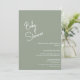 Este simples convite para chá de fraldas verde de sábio permite convidar convidados para o seu evento. Trata-se de um simples escrevendo branco, escrito à mão, com uma letra simples. Personalize inserindo nomes, datas, horários, locais e outros detalhes.