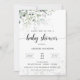 Um design simples e elegante, com folhas verdes douradas e folhagem aquosa com eucalipto verde. O convite oferece uma sensação botânica do jardim natural que o torna perfeito para um chá de fraldas neutro em termos de gênero.