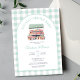 Celebrar a mãe a ser com o nosso belo convite local. A design apresenta uma fatia de mercado de um fazendeiro de aquarela em um fundo de gingham verde, fazer na moda e charmoso. Use as ferramentas de design para personalizar o texto. Também disponível como download digital.