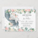 Personalize este convite de chá de fraldas chic com os detalhes do chá de fraldas de forma fácil e rápida, basta pressionar o botão personalizar para reorganizar e formatar o estilo e a colocação do texto. Este convite cômico apresenta um belo elefante para bebês dormindo entre as folhas rústicas de cor d'água, eucaliptos, adornada por belos rosas de jardim de marfim, cor-de-rosa, blush e marfim. Perfeito para receber seu novo pacote de alegria. Itens correspondentes disponíveis no repositório! (c) O feliz Cat Studio.