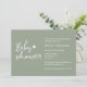 Celebre a chegada do seu pequeno com o nosso "Convite para Chá de fraldas 'Oh Baby', Personalizado Verde do Sábio Moderno". Este convite para na moda apresenta um design contemporâneo em verde-calmante, definindo o tom para um evento chic e elegante. Personalize os detalhes para refletir seu estilo e preferências pessoais, garantindo uma celebração única e memorável. Sexo neutro com design cardíaco. Projetado com talento moderno, este convite é perfeito para qualquer futura mãe que aprecie estética minimalista. Quer seja uma festa de chá ou revelação de gênero, este convite é a palco de um encontro sofisticado e alegre de amigos e familiares. Compartilhe a entusiasmo de acolher o seu pacote de alegria com o nosso convite moderno de 'Chá de fraldas'.