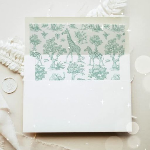 Convites Chá de fraldas verde Toile de Jouy Safari