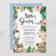 Cartão de Convite para Chás de fraldas Tropical Verde Tropical Selgle Safari Animal. Celebre a chegada do seu bebê precioso com este cartão de convite festivo, chico e bonito. Todos os textos estão pré-organizados para que você personalize fácil e rapidamente com os detalhes do seu chá de fraldas.