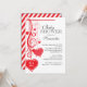 Comece seu chá de fraldas fora do direito com nosso convite moderno do chá de fraldas dos corações. Convite à moda & contemporâneo do chá de fraldas que caracteriza os corações de suspensão vermelhos ajustados em um fundo branco. Lance o convite sobre para encontrar uma coordenação da parte traseira vermelha e branca da listra. Convite bonito do chá do bebé ou convite do chá de fraldas do bebé para um chá de fraldas do dia dos namorados, ou o chá de fraldas do primavera, o chá de fraldas do verão, o chá de fraldas do outono da queda ou o chá de fraldas do inverno. Visite nossa loja para ver o convite bonito em outras escolhas coloridas, brilhantes & do divertimento da cor.