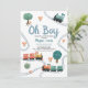 Este bonito e moderno convite de chá de fraldas para rapazes "Oh boy" apresenta um design de viagem de trem, com comboios coloridos, árvores e verde, com um padrão de viagem de trem correspondente no verso, e pode ser personalizado com os nomes da mãe e outros detalhes necessários para o seu partido. A perfeita adição com viagem para o chá de fraldas dos teus rapazes.