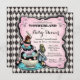 Alice no chá de fraldas das Maravilhas convidada com xícaras de chá bonito em um fundo de diamante preto e rosa antigo. Este belo convite para o chá de fraldas Wonderland é facilmente personalizado para o seu evento, simplesmente adicionando os seus detalhes no estilo de letra, cor e texto da sua escolha.