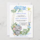 Por vezes, quando não podemos estar juntos pessoalmente, um chá de fraldas virtual é a próxima melhor coisa. Esta design engraçada tem um elefante de bebê fofo e viscoso a chutar-se dentro de uma estrutura de ouro geométrica revestida com flores azuis e folhagem. Personalizar facilmente a tipografia.