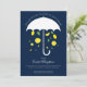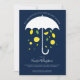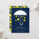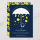 Um convite virtual para chás de fraldas com um guarda-chuva branco que está mostrando limões sorridentes e folhas verdes em um fundo azul. Este convite bonito tem um toque de elegância sem ser muito sério, deixando muito espaço para você se divertir muito. Simplesmente personalize as palavras, adicione este convite ao seu carrinho e tenha um chá de fraldas maravilhoso.