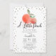 Este convite virtual/zoom/online para meninas bonitas apresenta um fundo branco com um par de pêssegos em aquarela moldados por pontos aleatórios em ouro de bronze falso. O verso apresenta um fundo de rosa claro com pontos aleatórios. Personalize para suas necessidades. Você pode encontrar mais produtos correspondentes na minha loja.