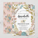 Este convite de festas giro de jardim virtual/online/zoom apresenta um fundo branco com flores em rosa, azul e branco. O verso apresenta um fundo cor-de-rosa pincelado com padrões florais. Altere a cor de fundo e personalize para suas necessidades. Você pode encontrar mais produtos correspondentes na minha loja.