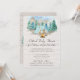 "Velho Urso Rústico da Floresta de Madeira Convite Virtual para Chás de fraldas." Quando é hora de comemorar a chegada pendente do seu filho-a-ser, aqui está um convite que pode ajudar seus familiares a navegar no processo. Pavimentos russos de madeira clara com floresta de pinheiros com aquarela com montanhas e céu, juntamente com lindos animais florestais acampados com o texto tipográfico, "Deixe a aventura começar." Criada e projetada pela artista internacionalmente conhecida e licenciada Audrey Jeanne Roberts. Direitos autorais.