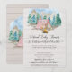 "Vestido Rosa, Urso Rústico, Convite Virtual para Chás de fraldas." Quando é hora de comemorar a chegada pendente da sua futura menina, aqui está um convite que pode ajudar seus familiares a navegar no processo. Lenha russa com madeira de pinheiros com aquarela com montanhas e céu, juntamente com animais bonitos da floresta ao redor de sua tenda rosa enquanto acampam junto com o texto da tipografia, "Que a aventura comece." Criada e projetada pela artista internacionalmente conhecida e licenciada Audrey Jeanne Roberts. Direitos autorais.